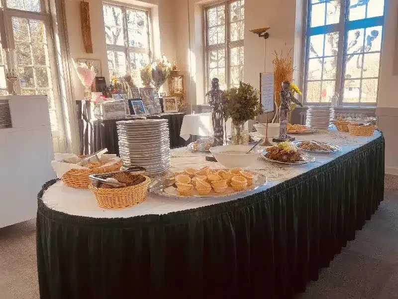 Hjertebegravelse vil gerne være behjælpelige med at finde en leverandør af mad og drikke til jeres mindesammenkomst. Alternativt kan vi hjælpe med at finde et sted, der kan huse jeres deltagere ved mindesammenkomsten, samt stå for traktementet.